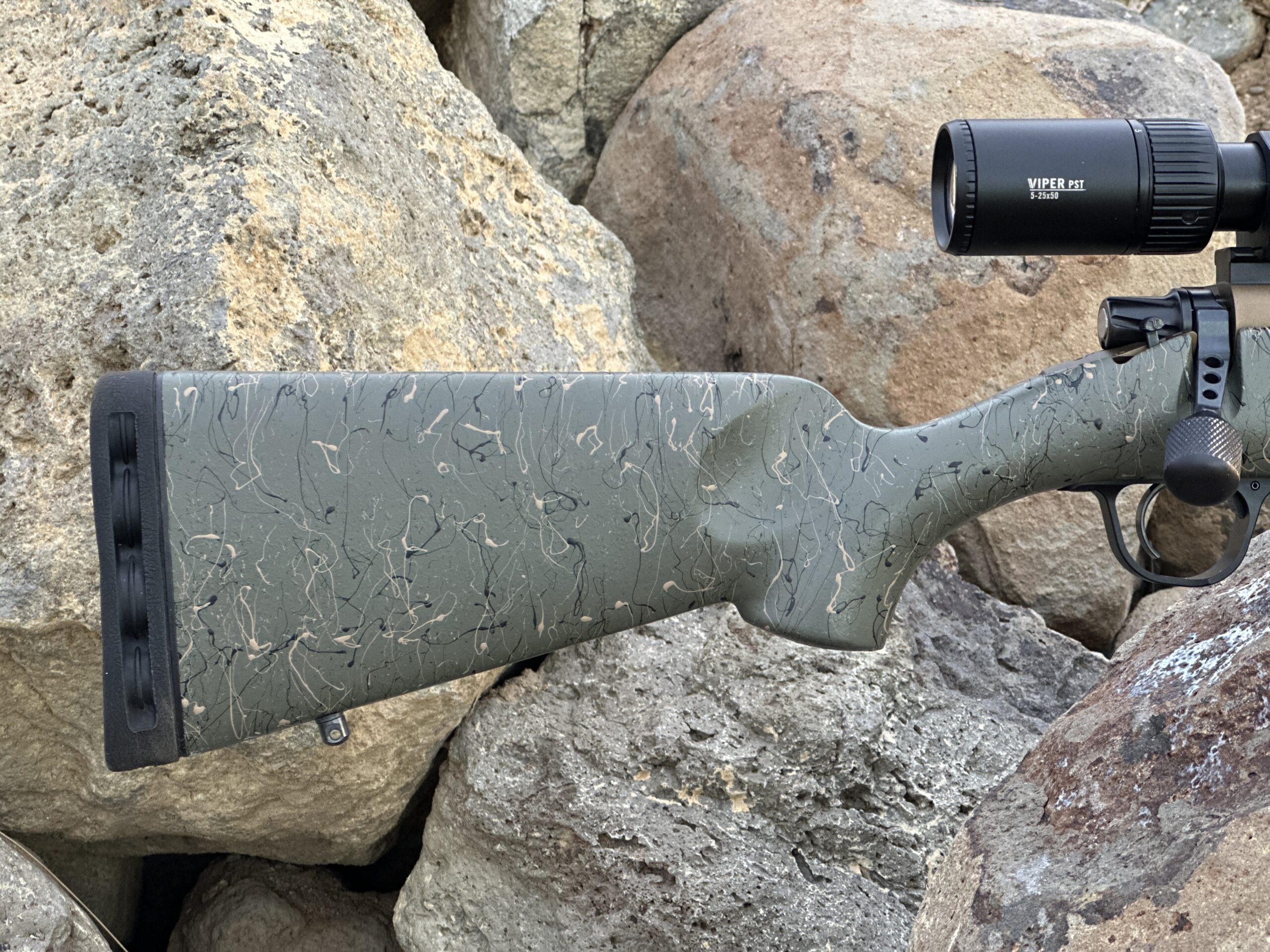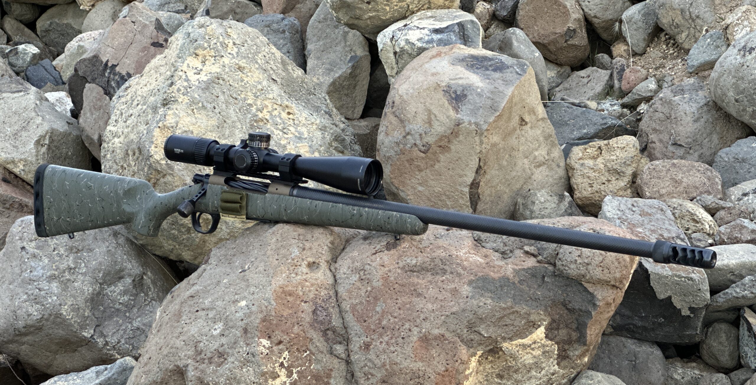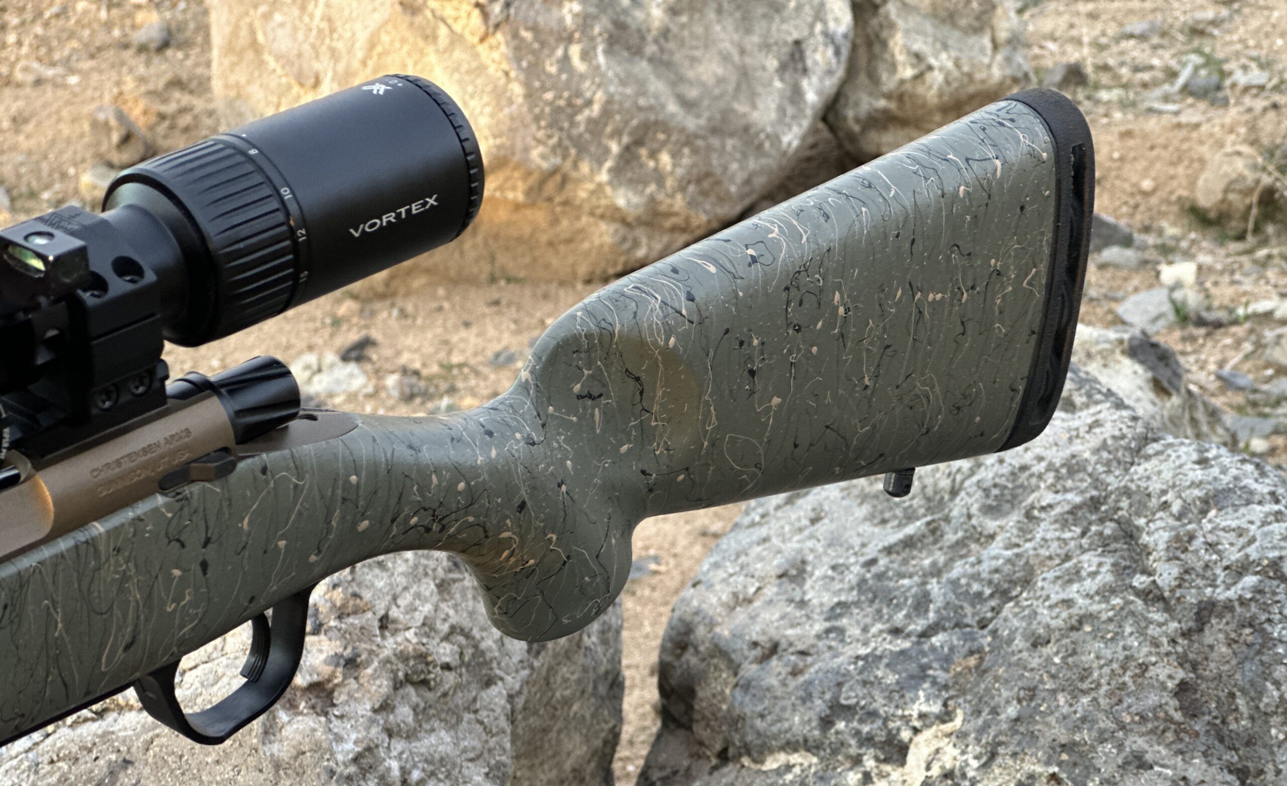 - Burnt Bronze Cerakote + Carbon with Green and Tan Accents